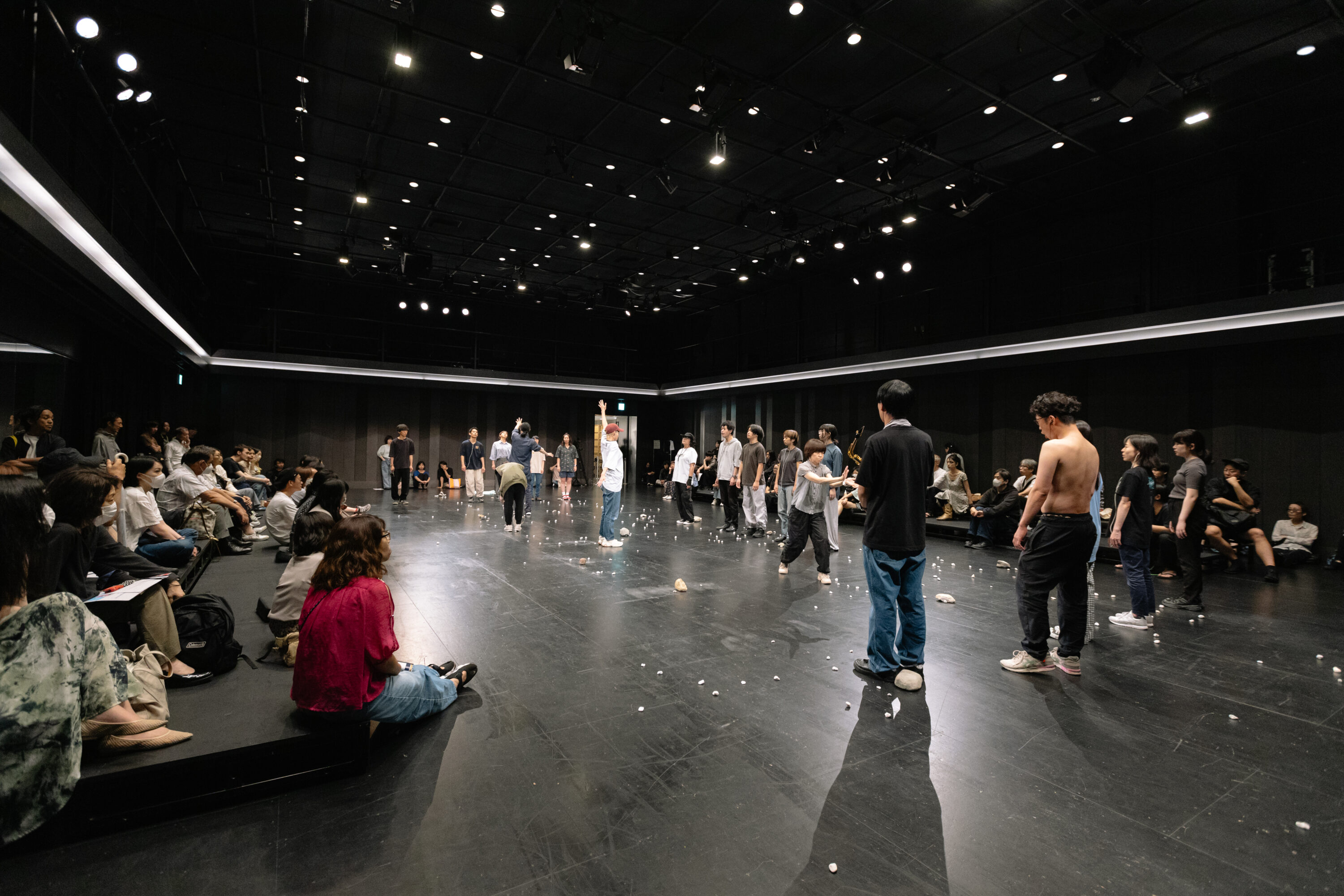 C.(バックヤードやトイレを含む)劇場内を移動しながら演奏・発声する奏者・パフォーマーと一定時間共存し、行為や状況の変化に立ち会う場合
