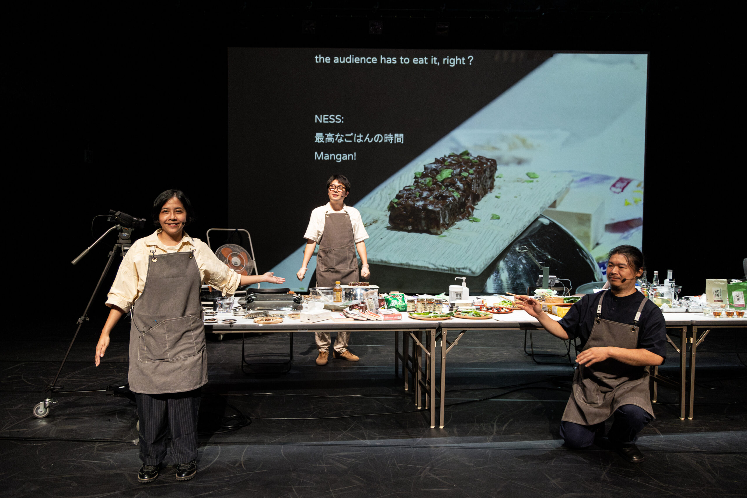 メンバーはアーティスト・コレクティブ「オル太」メンバーのJang-Chi、台北拠点でパフォーマンスとビジュアル・アートを横断した活動を行う李銘宸、フィリピン出身の俳優・ドラマトゥルクのネス・ロケ、台湾生まれで日本語で小説を執筆する温又柔。それぞれの母語とそうでない言語が飛び交う舞台では、さまざまなトピックが旅していく。話題は太古の島々の発酵食から、互いの言語や翻訳にまつわるエピソード、大切な味の記憶まで。やがてキッチンでもある舞台で、できあがるものとは。