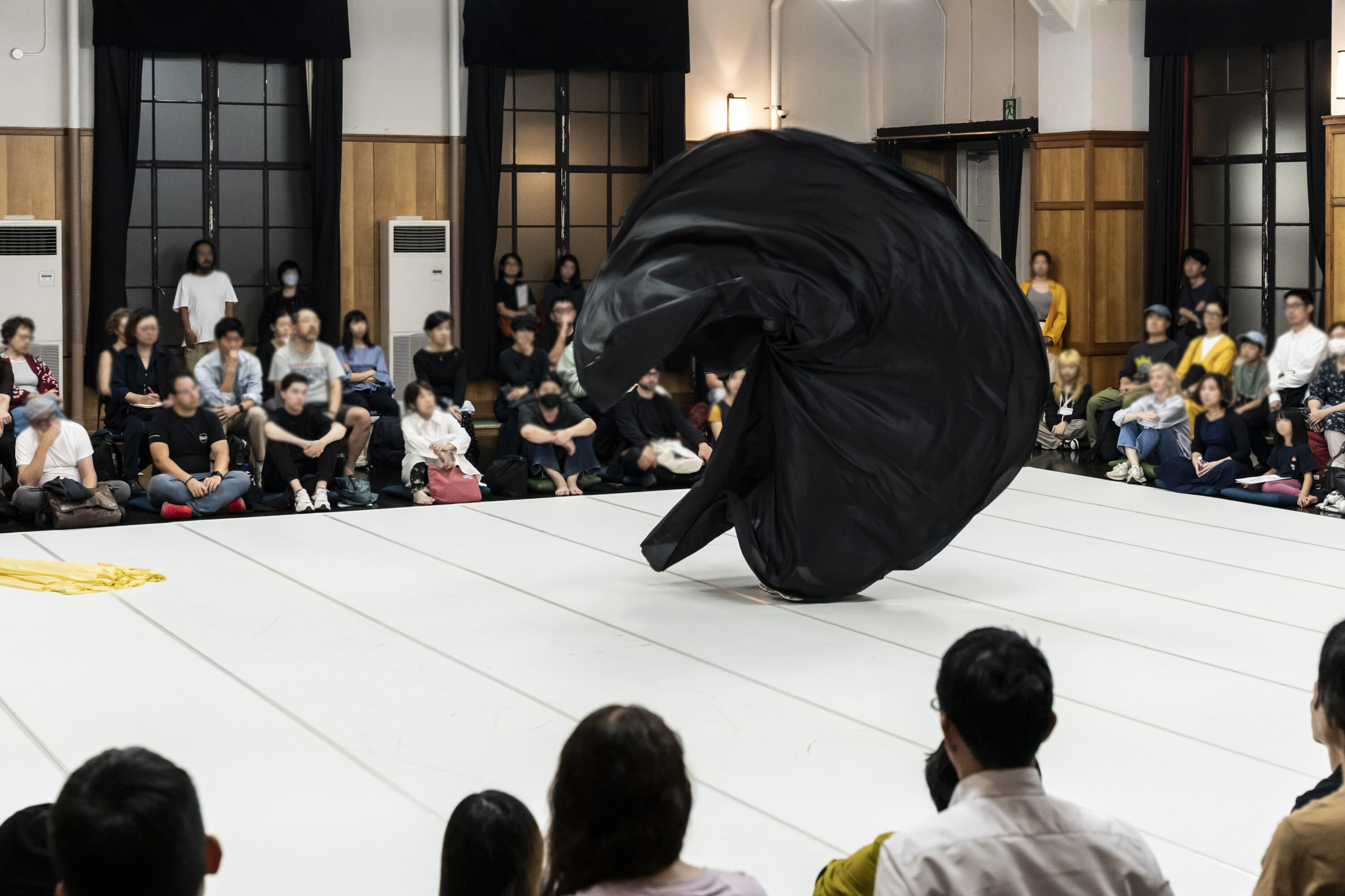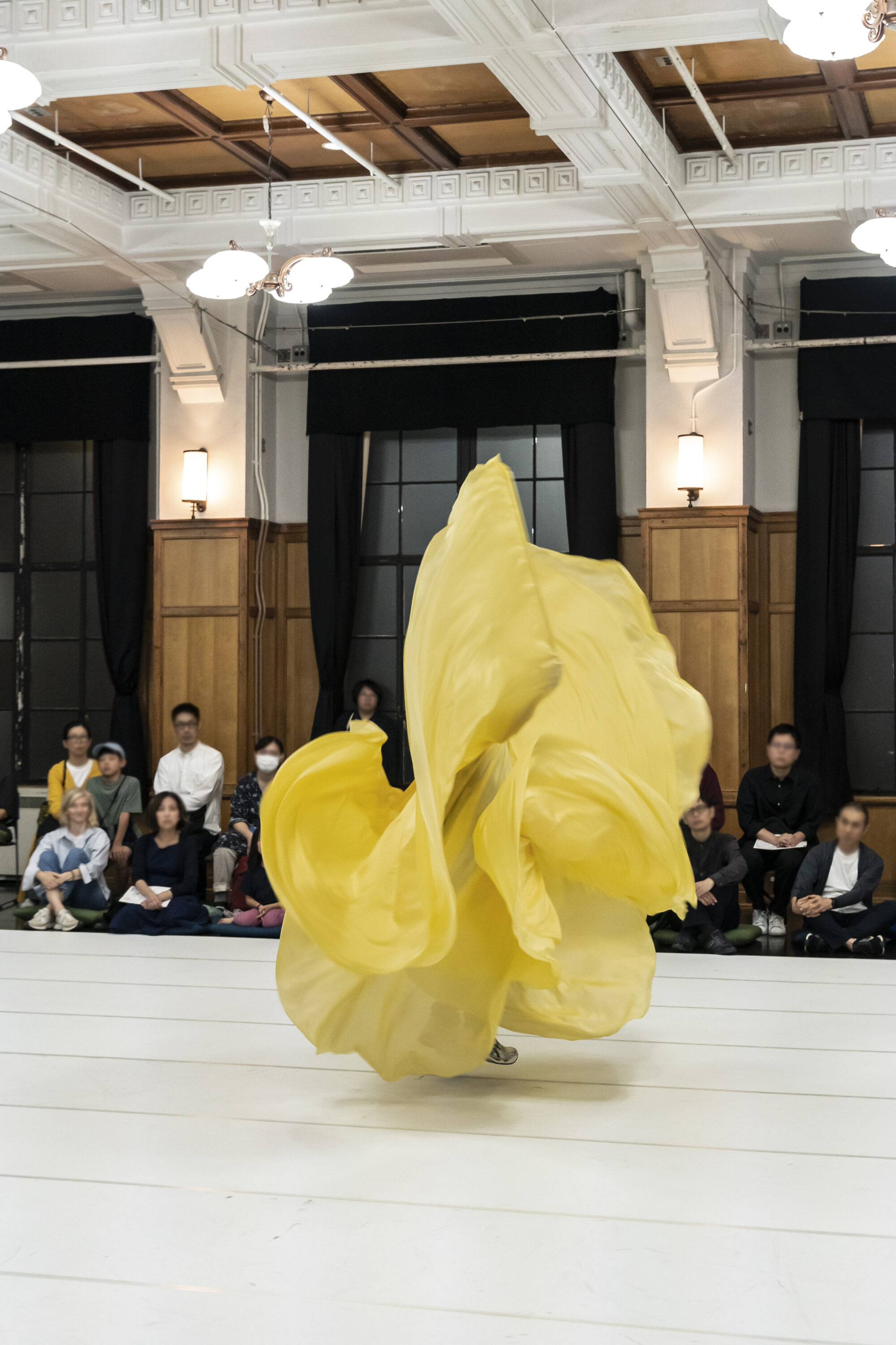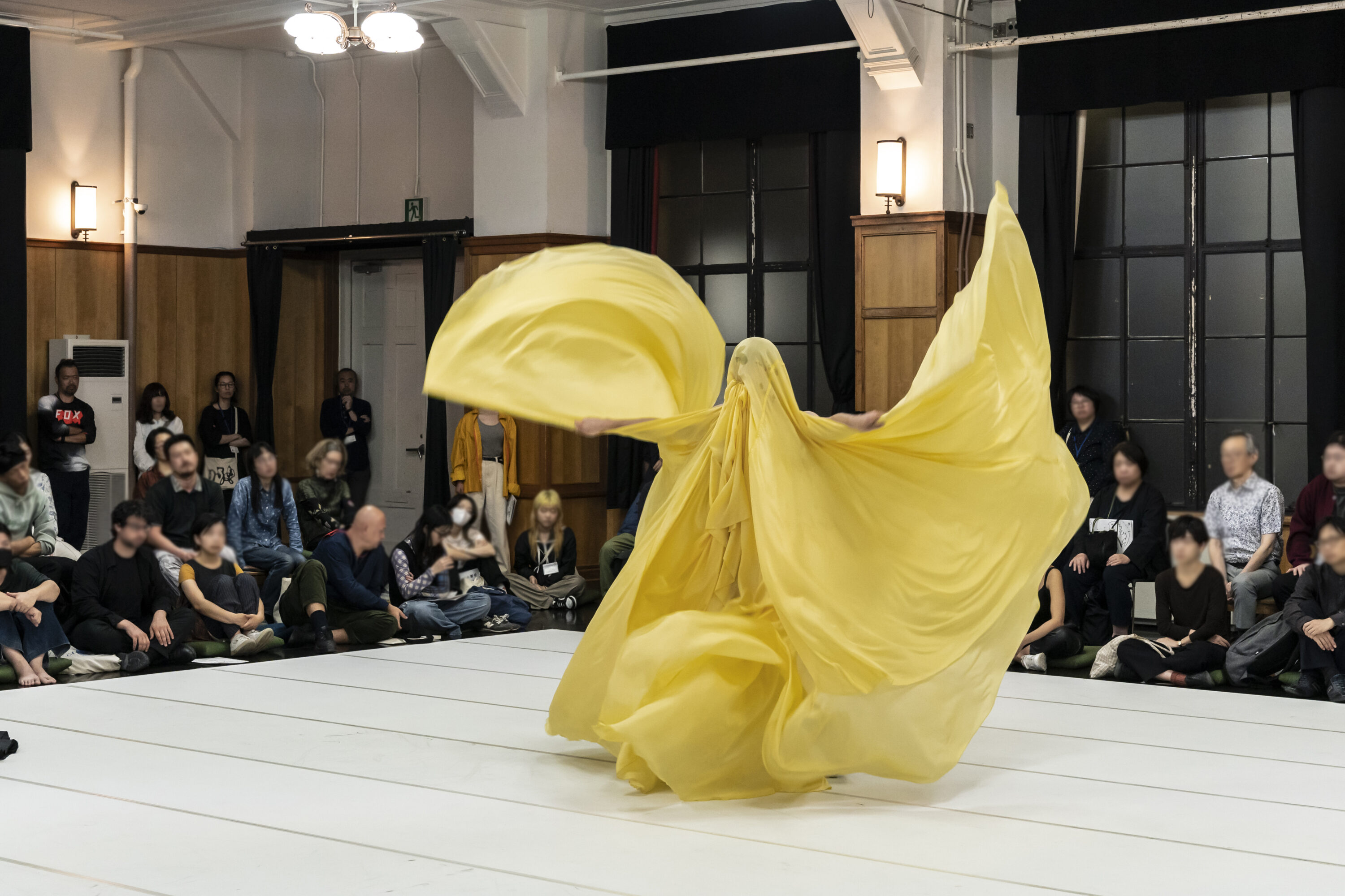 フラーが残したこのダンス史の伝説に、現代から応答したのが振付家のオラ・マチェイェフスカだ。真摯なリサーチと身体を用いたアーカイブの実践から、2011年に観客の間近でソロパフォーマンスを展開する『ロイ・フラー:リサーチ』を発表した。その後、この作品を3人のダンサーによる劇場型の『ボンビックス・モリ』へと展開させた。『ボンビックス・モリ』は、この象徴的な「サーペンタインダンス」の物質性に注目し、次第に緊張感を高めながら、この夢幻的なダンスを丁寧に紐解いていくことで新たな解釈を提案する。身体、物質性、サウンドが紡ぎあわされることでダンス史との対話が生み出される本作は、アイコンとしてのフラーの神話とそのパラドックスに向き合う。